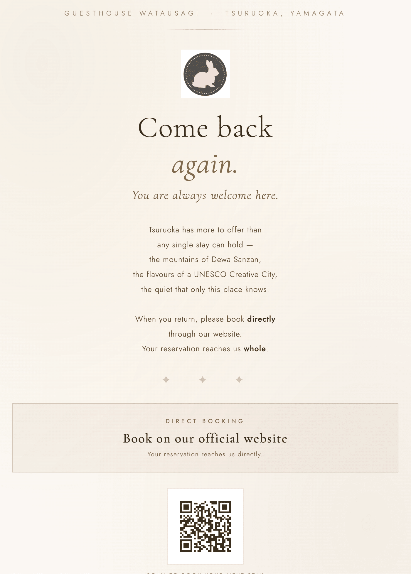 But once you've found us — and especially if you've stayed with us before — there's something we'd love you to know.